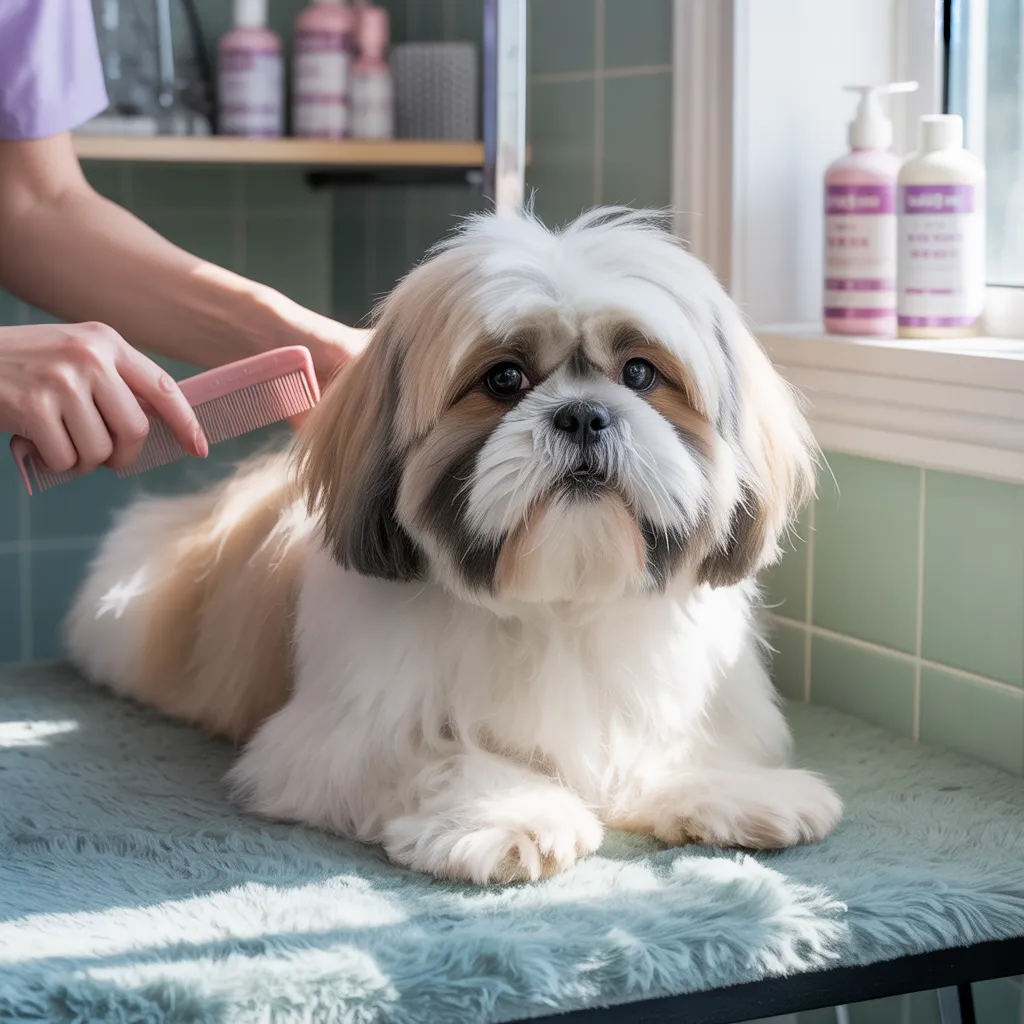 Bathing is one of the most rewarding parts of grooming a Shih Tzu — nothing beats the fresh, fluffy look afterward!